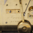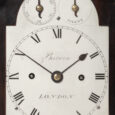 De toogvormige, mat-verzilverde wijzerplaat heeft een zwarte Romeinse cijferring met streepjes als minuutverdeling. De tijd wordt aangegeven door twee uitgezaagde blauwstalen wijzers. In de toog bevinden zich twee kleine cijferringen L: de reglage en R: slaan/niet slaan. Bij de III en IX bevinden zich de opwindgaten voor gaand- en slagwerk, met in het centrum de gegraveerde signatuur Barwise London.