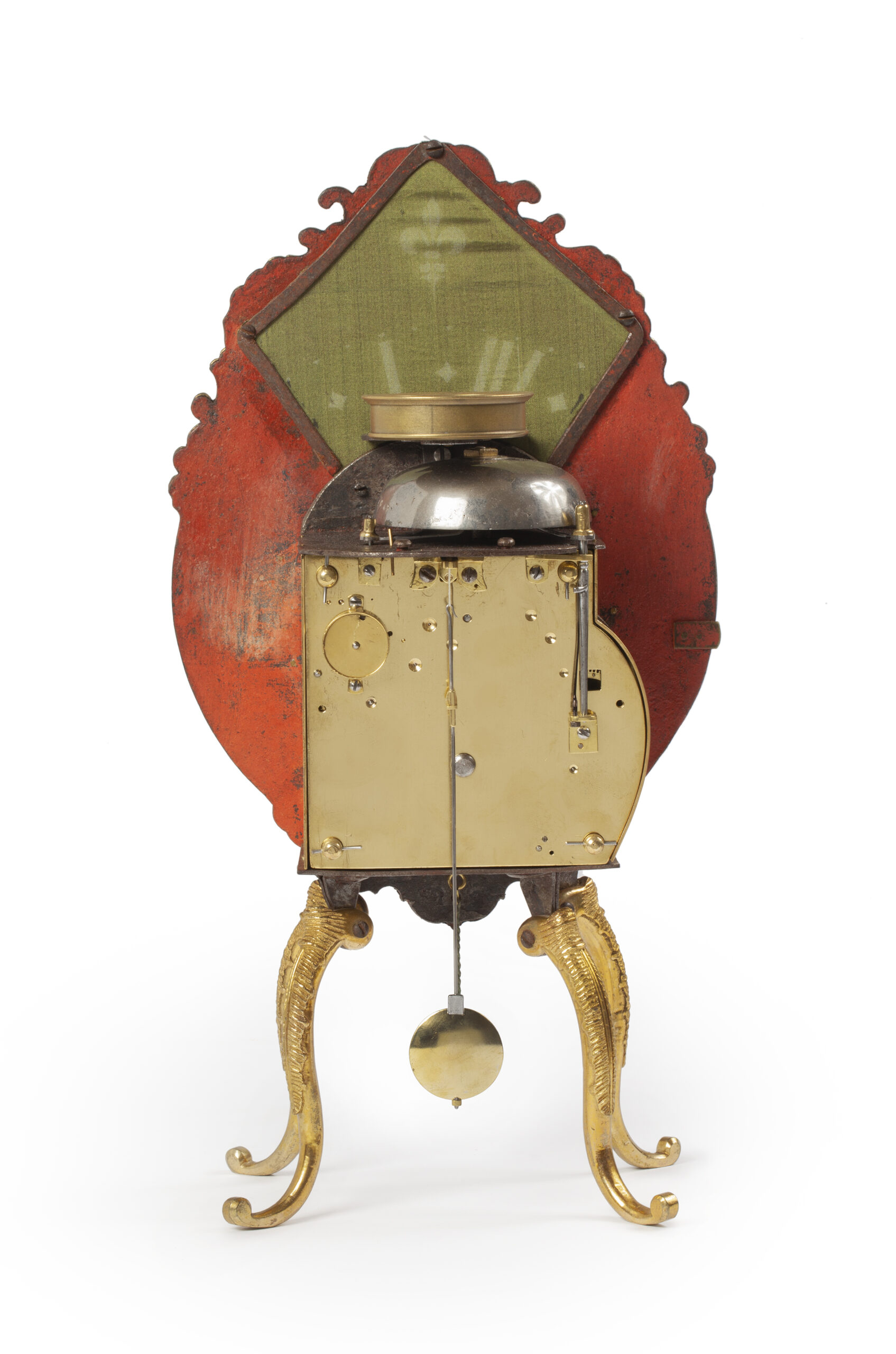 De messing kast van het uurwerk is achter de wijzerplaat geplaatst en heeft aan twee zijden deurtjes, de bel is op een zijde gemonteerd.